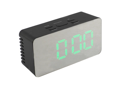 Biurkowy zegar lustrzany może zarówno działać na baterie jak i przez kabel USB.