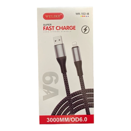Kabel USB A do Lightning w oplocie mocny do 6A 3M