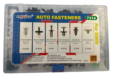 Zestaw 290 sztuk różnych zatrzasków mocujących do naprawy nadwozia samochodu BMW