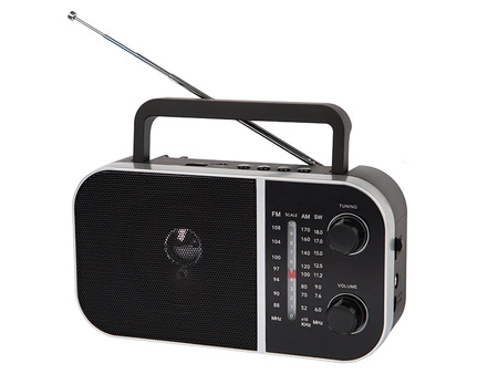 - Klasyczne przenośne radio z AM/FM/SW, funkcja odtwarzania muzyki z Bluetooth oraz odtwarzacz MP3 z pendrive USB lub czytnik microSD TF, teleskopową anteną i zasilaniem sieciowym lub bateryjnym.
