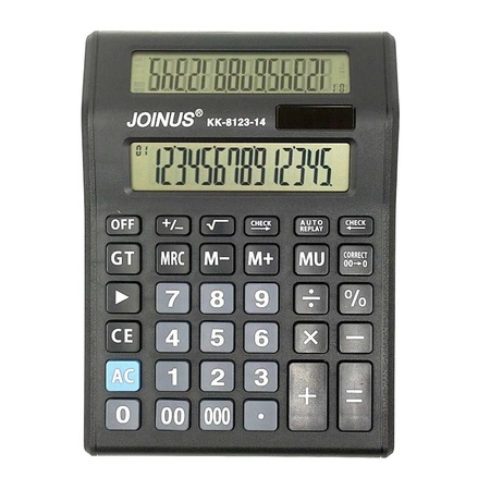 - Kalkulator biurkowy z podwójnym wyświetlaczem LCD, funkcją kontroli 120 kroków i zasilaniem solarno-bateryjnym. Niezawodny w biurze i w domu.